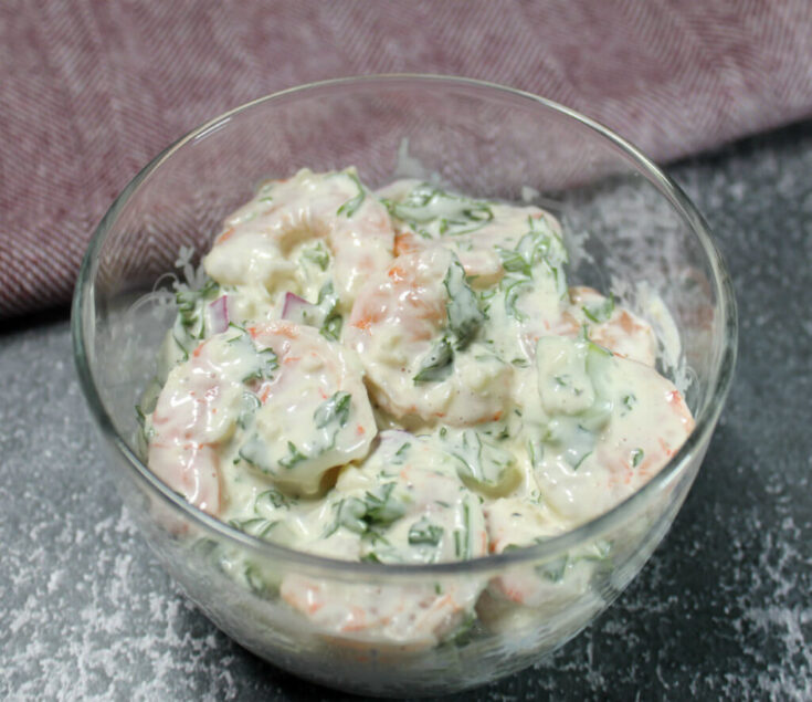 This creamy keto garlic shrimp salad is a wonderfully delicious salad! It combines the perfect balance of creamy and crunchy elements!