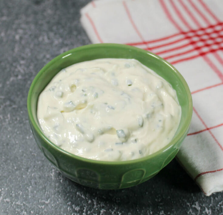 You have some awesome low carb options for serving this dip! Using raw vegetables for dippers is a delicious option. Some great low carb choices include broccoli, cauliflower, celery, cherry or grape tomatoes, cucumbers, mushrooms, radishes, and sliced bell peppers. You can also use cheese whisps, keto crackers, and pork rinds for dippers. Another fun option is to use sliced cheese as your dippers. Meats such as pepperoni, salami, and other sausages are fun choices as well. This dip can also be used as a topping for burgers, keto sandwiches, or lettuce wraps. You can also use it as a dipping sauce for meats or for keto chicken nuggets. If you’d like to use it as a salad dressing, you can simply add a little heavy whipping cream to thin it out a bit.