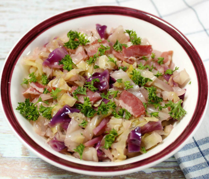 This keto braised cabbage with bacon is a delicious and filling dish! It makes for an awesome side for everyday meals and works great for holidays and special occasion dinners as well! The combination of green and red cabbage makes this dish especially flavorful and pretty!