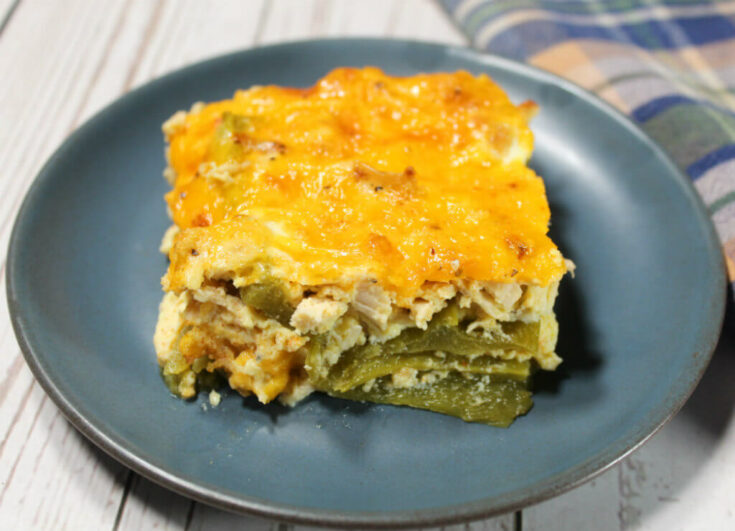 I love making my family comfort food, and these keto chicken green chile squares are always a huge hit at my house! We combine whole green chiles with chicken and cheese, then top them with a delicious egg mixture which takes this dish over the top in flavor and texture. You can serve this as a main dish, or you can cut it into smaller squares and serve as an amazing appetizer!