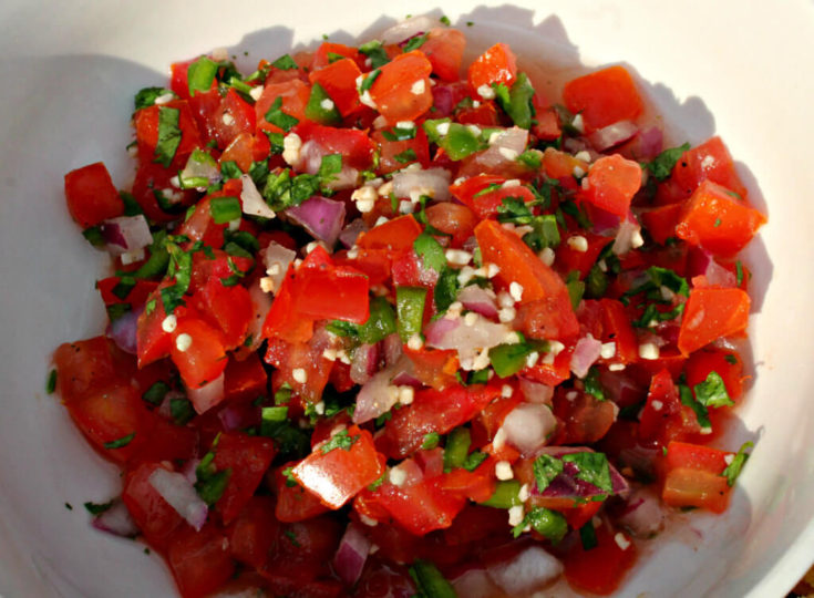 Pico de gallo literally translates into “rooster’s beak.” Why is this? Haha! I don’t know. There are numerous suggestions; but I don’t think anyone knows for sure. But it is a fun fact! It is also sometimes called salsa fresca. Pico de gallo has similar ingredients as traditional salsa. But it is different in that it contains fresh ingredients and its consistency is drier than salsa. Pico uses fresh tomatoes, while salsa may contain canned tomatoes with juice or even tomato sauce.