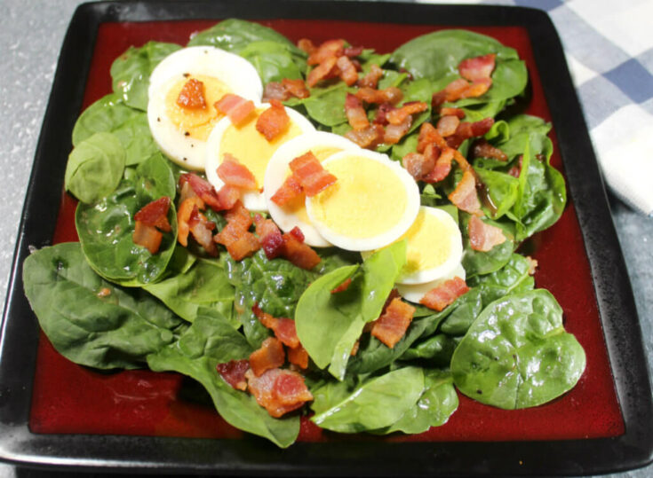 Keto spinach salad with warm bacon dressing is true comfort food. This classic salad is amazingly delicious and bursting with bold flavors!