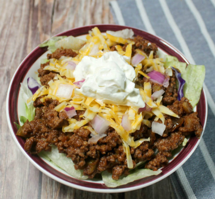 You have some great low carb options for serving your sloppy joes. This is amazingly delicious, served as is in a bowl. You can also top it with some shredded cheese, diced onions, guacamole, or sour cream. If you’d like, you could serve this as a sandwiches using your favorite keto bread, biscuits, English muffins, or chaffles. You can also make lettuce wraps using this sloppy joe mixture. I love salads and think I can turn almost anything, including these sloppy joes, into an amazing salad. Simply top your favorite lettuce, lettuce mix, or spinach with some of this sloppy joe mixture. Then top with your favorite salad add-ins including bacon, hard boiled eggs, shredded cheese, sliced avocados, or tomatoes and serve with your favorite dressing or vinaigrette. A fun and easy dressing can be made combining equal parts salsa and sour cream.