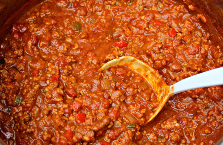 This is a fun and easy recipe but there are a few things you can do to ensure it comes together perfectly. First, drain all but about 1 tablespoon of the bacon grease. Then when you cook the ground beef and pork, make sure you drain the grease from them as well. Next, stir in your tomato paste well so you don’t end up with clumps of it in your chili. My last suggestion is to let this chili simmer for 30 minutes before serving. This will help the flavors to meld together and will give your chili time to thicken a bit. If you want to, you can let it simmer longer. Just check your chili and stir it occasionally. If it starts to get too thick while simmering, you can add a little water to it.
