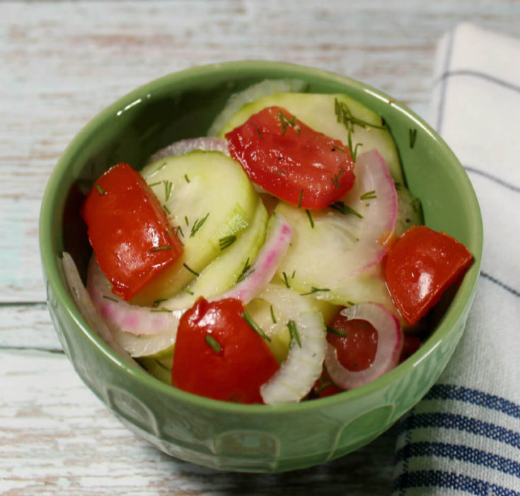 This marinated keto cucumber, tomato, and onion salad has become one of our favorite salads. I remember my grandma making salads similar to this one, using fresh vegetables from her garden. My grandma was an awesome cook and I know this is a salad she would have loved! Enjoy!